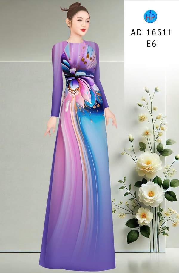 Vải Áo Dài Hoa In 3D Độc Đáo AD 16611 mẫu mới được thiết kế rất đẹp.