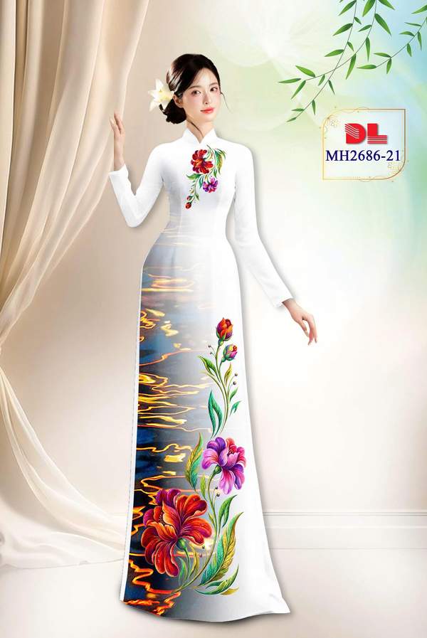 Vải Áo Dài Hoa In 3D Sang Trọng AD MH2686 mẫu mới được thiết kế rất đẹp.