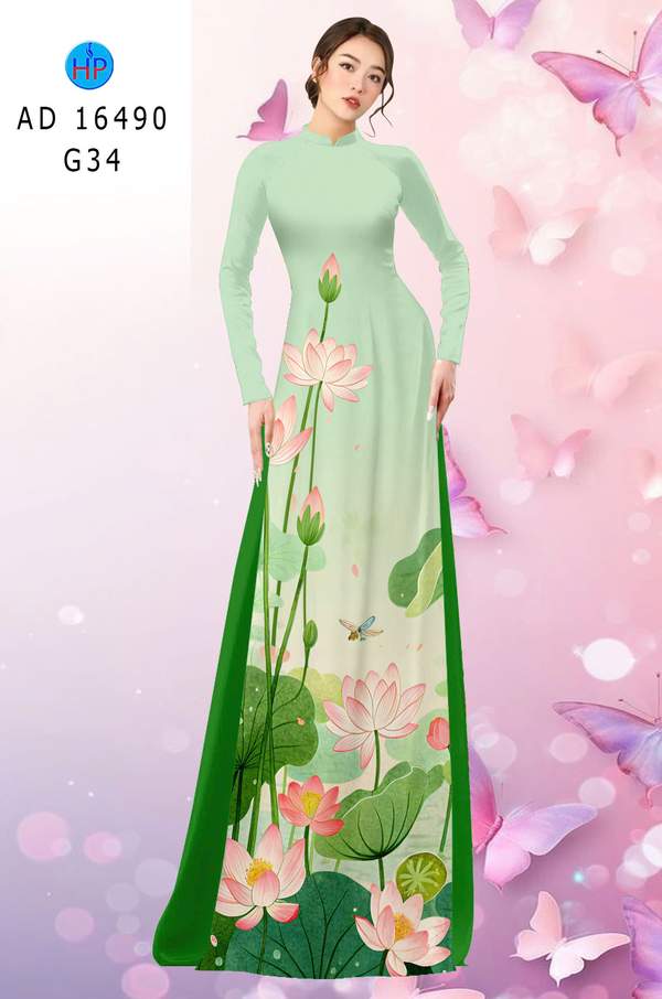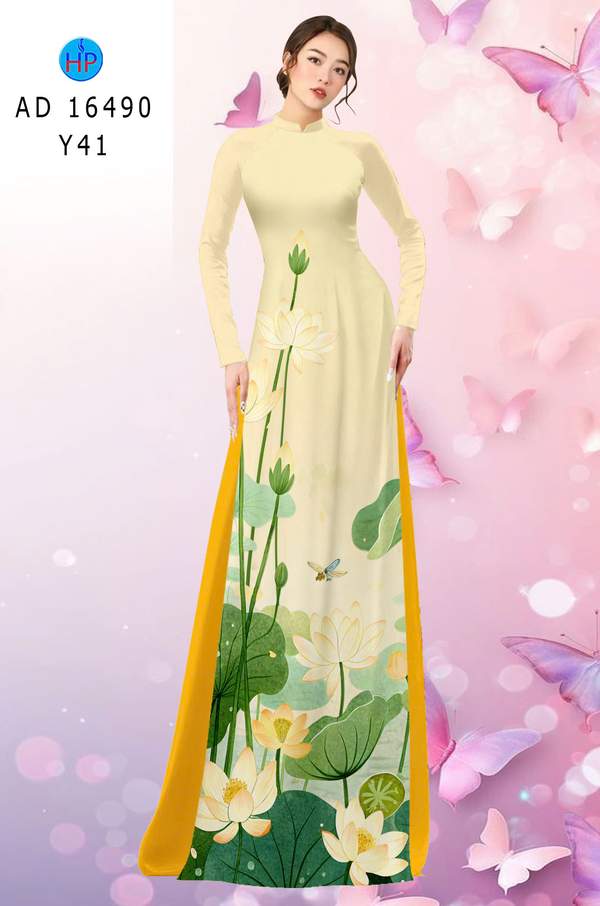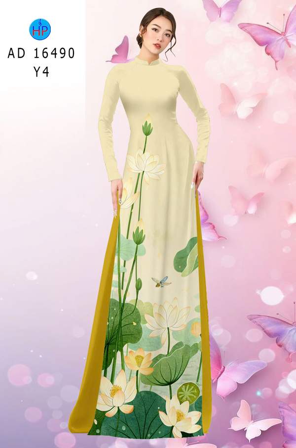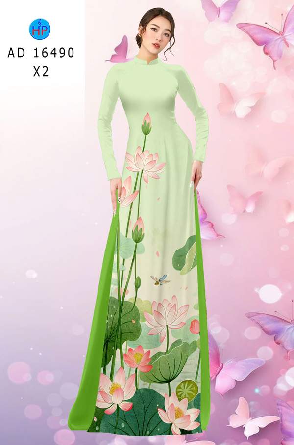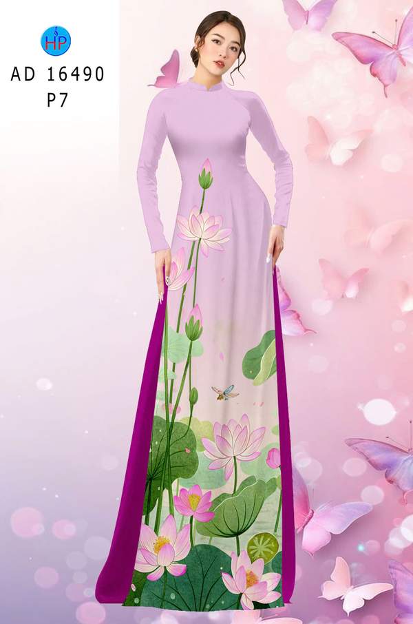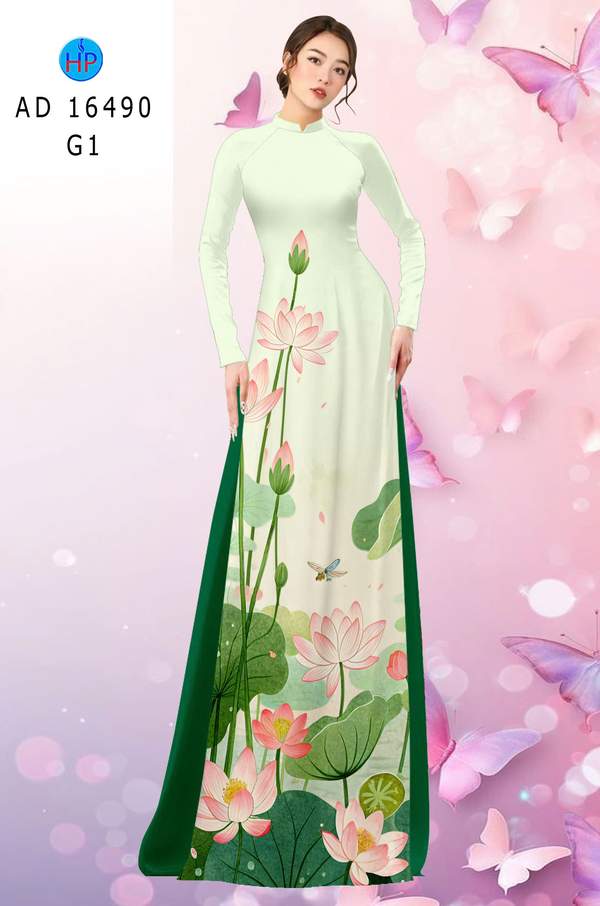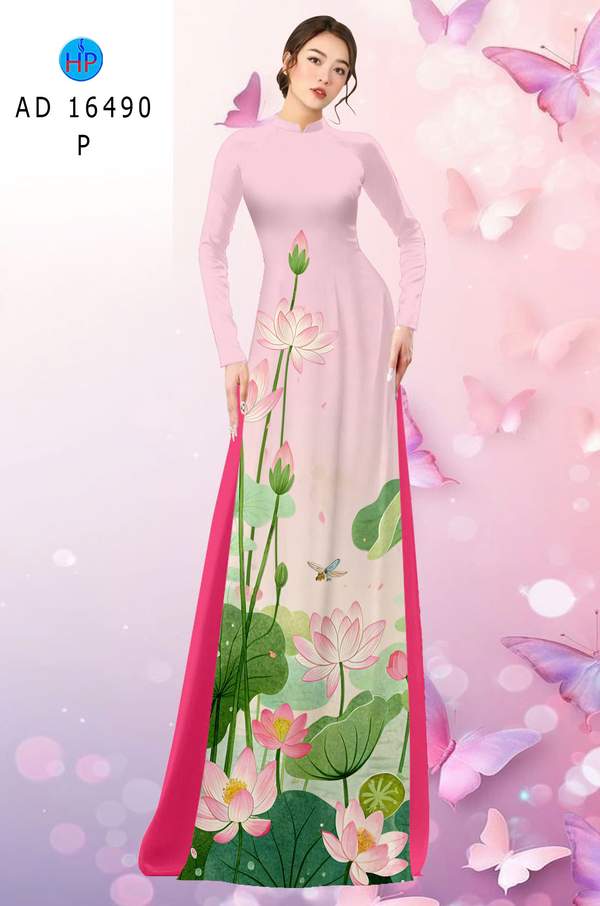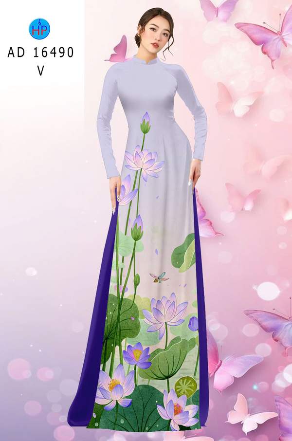 Vải Áo Dài Hoa Sen Mới Ra AD 16490 mẫu mới được thiết kế rất đẹp.