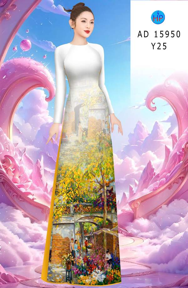 Vải Áo Dài Phong Cảnh Vừa Ra AD 15950-3 mẫu mới được thiết kế rất đẹp.