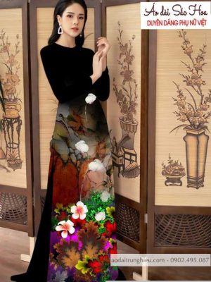 Vải áo dài hoa 3D mới ra AD C2875