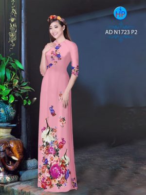 Vải áo dài chim công trong vườn hoa Mẫu Đơn mới ra AD 9038