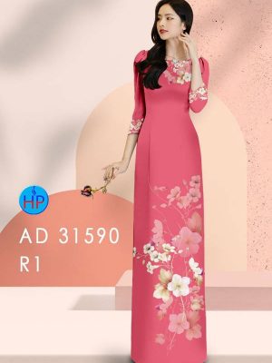 Vải Áo Dài Hoa Hồng Và Bi Thiết Kế 2022 AD 31513