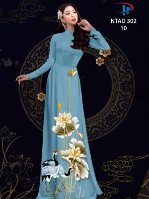 Vải Áo Dài Sen Và Hạc thiết kế 2021 AD NTAD302