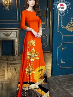 Vải Áo Dài Chim Hạc Và Hoa Thiết Kế 2023 AD MV4318