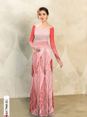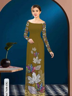 Vải áo dài in hình lá kiểu mới AD KC7438