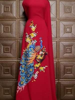 Vải Áo Dài Thái Tuấn Vẽ Chim Công Độc Đáo AD VE2611_172