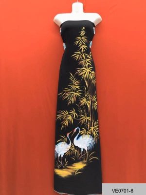 Vải Áo Dài Thái Tuấn Vẽ Tay Cao Cấp Hình Chim Hạc Và Trúc Kiểu Mới AD VE0701_6